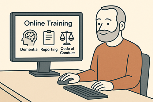 While security checks are underway, all prospective volunteers are provided with comprehensive training resources to prepare them for their role. This training covers essential topics such as infection control, effective communication with individuals living with dementia or disability, and a fundamental understanding of ageing. Volunteers also learn about duty of care, maintaining professional boundaries, recognising and responding to behaviours of concern, and fulfilling their reporting and privacy obligations. In addition, self-care strategies and the Aged Care Code of Conduct are emphasised to ensure volunteers are well-supported and aligned with best practice standards.